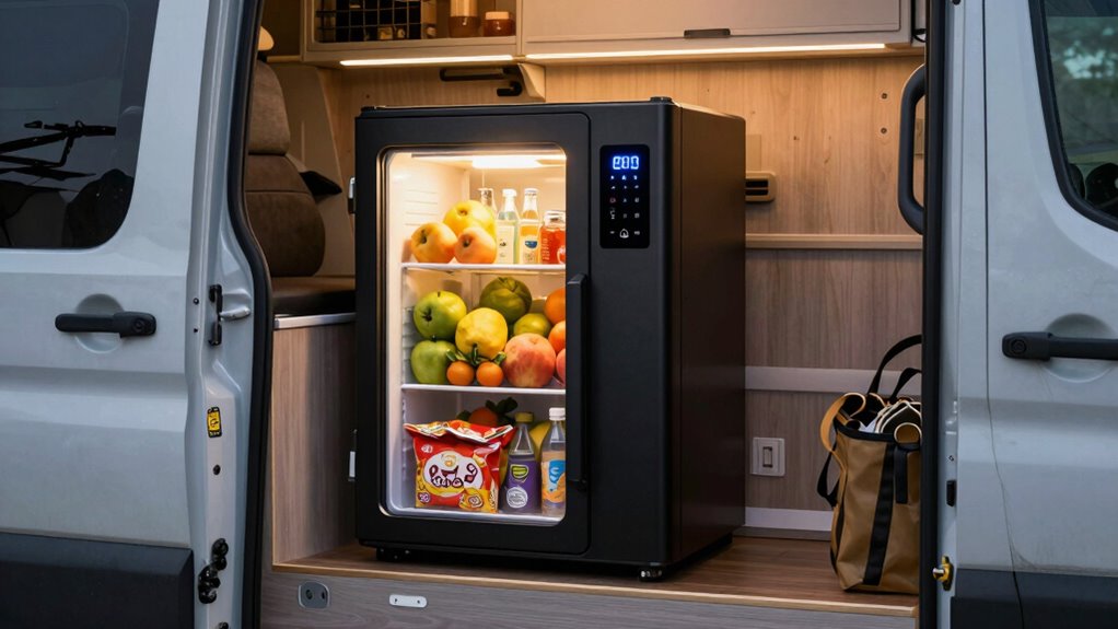 Choosing the right portable refrigerator freezer can truly elevate your vanlife experience. Did you know that over 65% of vanlifers report that reliable cooling considerably enhances their travel freedom? Whether you prefer a compact model or a larger capacity, picking the right unit means more fresh food and chilled drinks on the road. So, consider your needs carefully—you’ll enjoy every adventure even more with cold refreshments within reach. Happy travels!